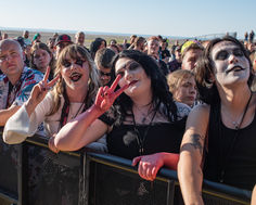 After an interlude that lasted longer than expected, In This Moment took the stage. Before they went on there was a risk of their set getting canceled as the wind picked up and started blowing the light rig around on the stage. Once the winds died down to an allowable level the band came out on the stage with Maria Brink and put on a killer performance. The band’s performance is very theatrical with stage setups and dancers backing vocalist Maria Brink in her performance. Although shorter in numbers performed than INK’s set the runtime seems to be just about the same, with the visual storytelling that goes into the set. At the end of the set stagehands brought out a giant podium with the word WHORE prominently written across the front as Maria Brink gave what was perhaps the performance of the evening standing at the top of the podium singing.
